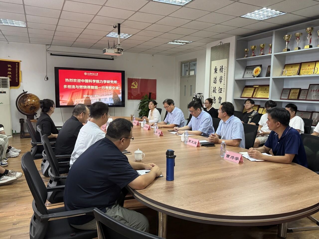 在交流环节中,能源学院党委书记王建国对赵建福研究员及杜王芳副研究员一行的到访表示欢迎,并简要介绍了学院办学概况。赵建福研究员则对中国科学院力学研究所的整体情况与科研布局进行了说明,重点阐述了中国科学院微重力重点实验室在我国微重力科学研究领域所取得的重要成就。双方还就未来合作方向进行了初步探讨。